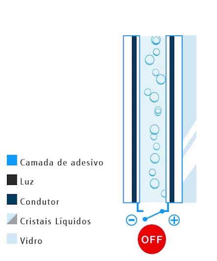A película inteligente Window Smart foi desenvolvida com um material hibrido de cristal liquido polimérico injetado no meio de 2 películas transparentes condutoras, com proteção 100% dos raios UV e com proteção de 90% dos raios infravermelhos, com apenas um click, a película inteligente sai do seu modo natural Opaco de 97% para seu modo transparente de 90%